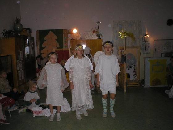 V průběhu besídky jsme divákům připomněli příběh Marušky, Holeny a macechy v pohádce „O dvanácti měsíčkách“ doprovázený řadou písniček a na závěr jsme všechny přítomné svátečně naladili „Vánočním příběhem“ o narození Ježíška, který byl vyplněn koledami a tancem šesti tanečníků z 1. až 3. ročníku na koledu „Stojí vrba košatá.“
