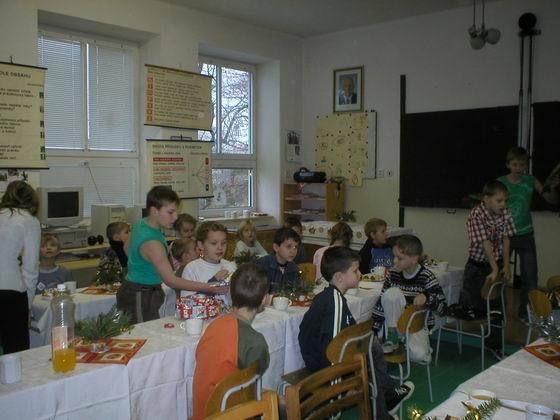 Když se nadšení diváci po skončení besídky rozešli, my jsme se ještě přemístili do druhé třídy, kde pro nás bylo připraveno občerstvení. Po svačince jsme obrátili své pohledy k vánočnímu stromečku, který pod sebou skrýval hromadu dárků a dárečků, které si vzájemně každoročně dáváme a další dostáváme do školní družiny. Když jsme si se vším pořádně vyhráli, nezbývalo nám nic jiného, než uklidit třídy, odstrojit stromečky a s radostným pocitem z nastávajících vánočních svátků a prázdnin odejít domů.