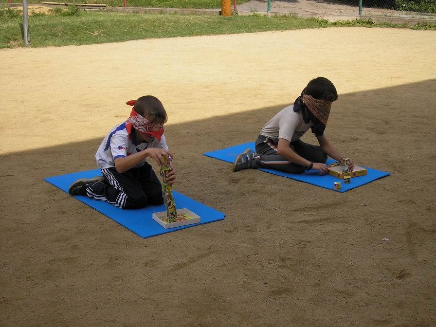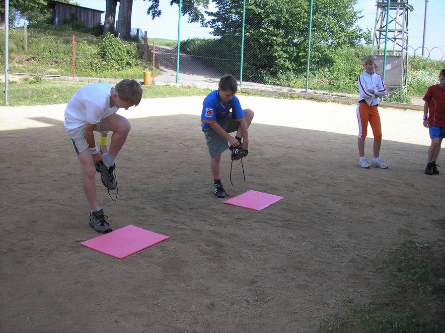 Setkali jsme se jako každé ráno v 8.00 hodin. Poté jsme byli rozděleni do čtyř soutěžních družstev. Než vypuklo sportovní klání, vyrobili jsme si vlajky, které měly naše družstva charakterizovat.
