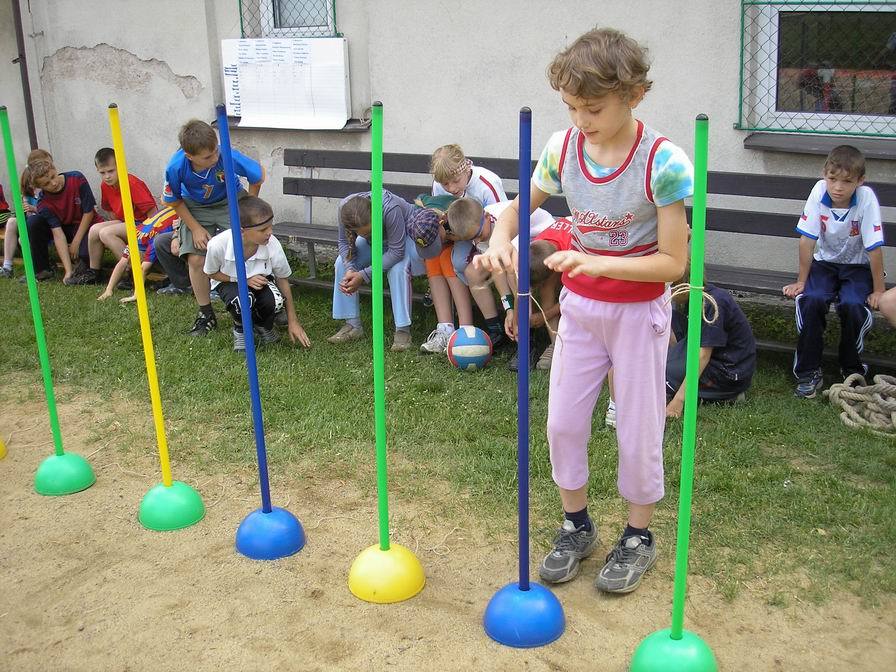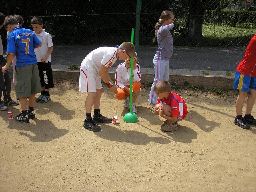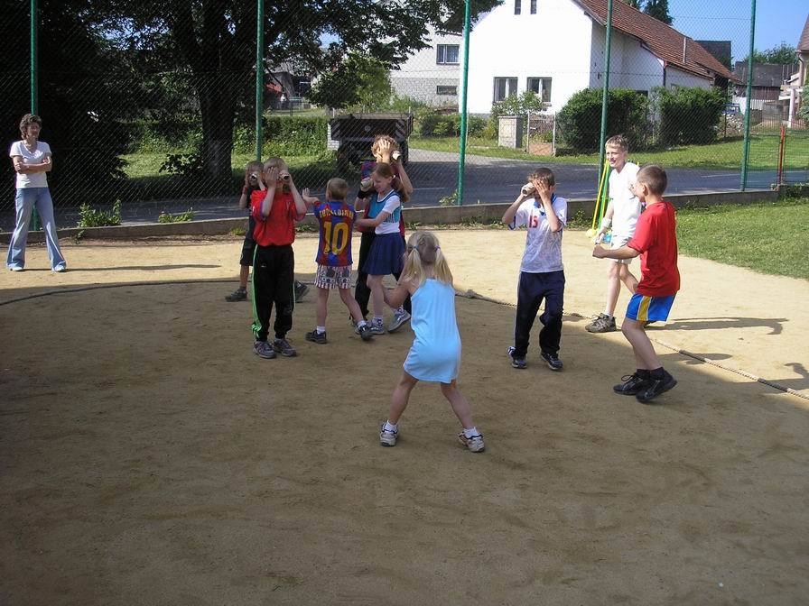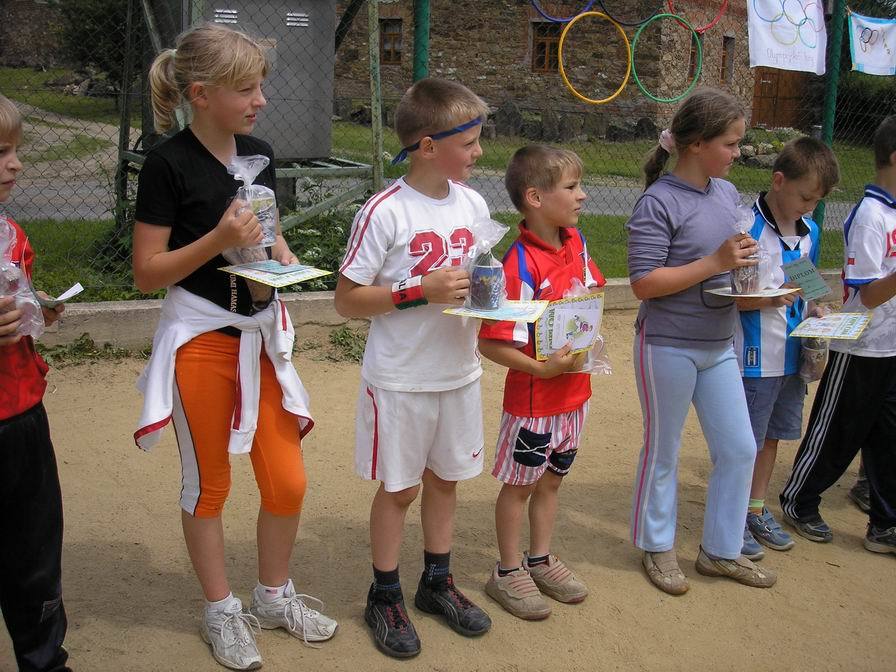 Družstva Panterů, Gepardů, Pirátů z Karibiku a Smrťáků se utkala v kamarádském duchu v netradičních disciplínách. Zahráli jsme si tak třeba „Honičku s kukátkem,“ nebo speciálně upravenou vybíjenou pod názvem „Nebezpečný trojúhelník,“ potrápili jsme se s „Neposednou tkaničkou“ a všem ukázali, jak máme „Hbité ruce“ při navazování uzlíků a kliček. Nejvíc úsilí jsme vynaložili při hře „Hovnivál,“ protože posouvání pingpongového míčku pomocí kelímku zavěšeného na provázku nebylo na písčitém povrchu hřiště vůbec jednoduché. Také jsme se proměnili v „Jojo“ a vyzkoušeli si na vlastní kůži, jak se tato hračka namotává a rozmotává, až se nám z toho točila hlava. Největší radost jsme měli z fotbalového zápasu, po kterém už následovalo předávání medailí, diplomů a dárků. Sedletínské olympijské hry jsme zakončili opět státní hymnou.
