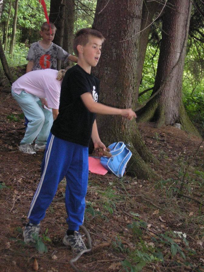 V pondělí jsme hráli v lese hru „Brouci kousáci,“ kdy jsme přinášeli rozházené obrázky brouků v lese pomocí dvou klacíků nebo v ústech, luštili hlavolamy pověšené na stromech a po návratu ke škole si na hřišti zahráli na naše přání vybíjenou a fotbal.