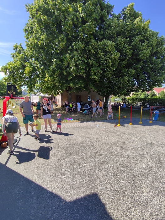 Pro děti bylo připraveno několik stanovišť s úkoly, které bylo možné na daném prostranství umístit. Nechyběl např. šplh po laně, hod na smajlíky a na plechovky, chůze po lavici s míčkem na lžičce, skákání panáků, hod kroužků, opičí dráha a další. Pro nejmenší děti byl připraven dětský koutek. Po splnění všech úkolů obdržely děti za každý úkol bod na připravené kartičky a po splnění všech deseti úkolů děti obdržely velmi pěknou odměnu. Kromě úkolů se mohly děti pobavit na skákacím hradu, posedět se svými rodiči i prarodiči na parketě a dát si v pohostinství občerstvení a nedělní odpoledne tak společně strávit.