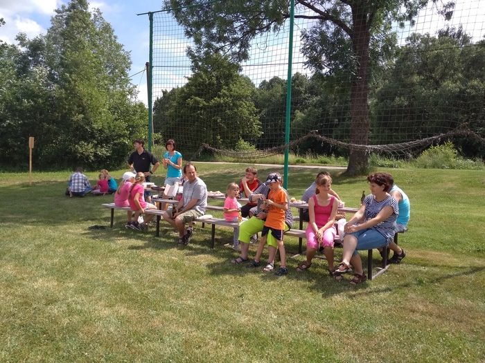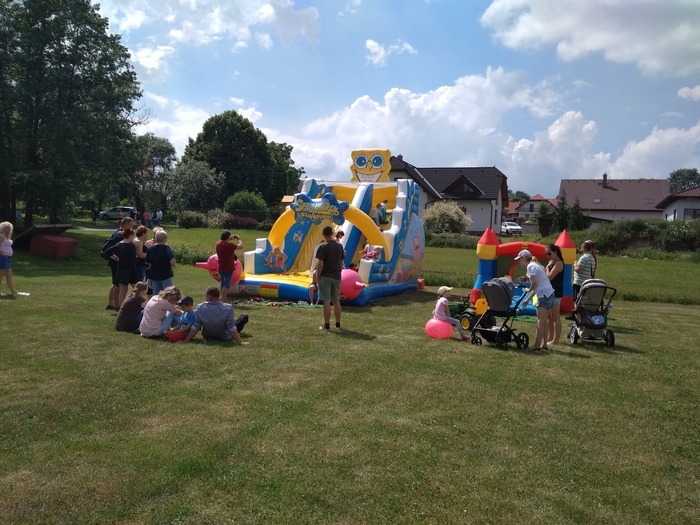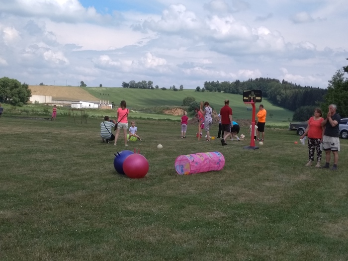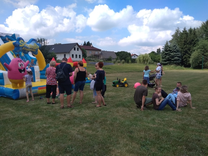 Krátké zklamání nejen dětí ale i dospělých se po chvilce vytratilo a bylo nahrazeno hrátkami na hřišti, kde byly pro děti připraveny sportovní úkoly, a hlavně velká nafukovací skluzavka, která ani na minutu nebyla opuštěná a také nafukovací skákací hrad pro ty nejmenší. Rovněž bylo připravené i malé občerstvení – svačinka. Různé dobrůtky, co napekly maminky a samozřejmě i něco k pití.