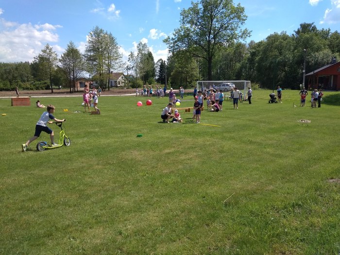 Letošní dětský den jsme pojaly jako malé sportovní odpoledne. Děti při příchodu obdržely kartičky, na kterých byly zaznamenány jednotlivé sportovní disciplíny s kolonkou, do které se na jednotlivých stanovištích doplňoval výsledek. Pokud nebyl někdo s výsledkem spokojen, mohl opravovat. Platil ten nejlepší.