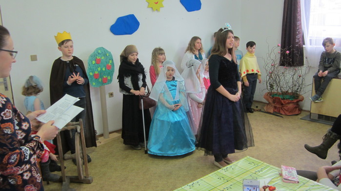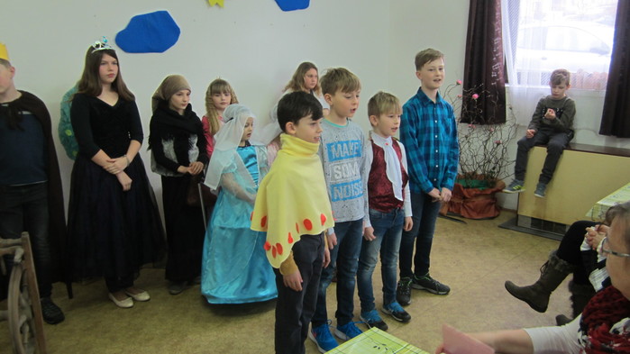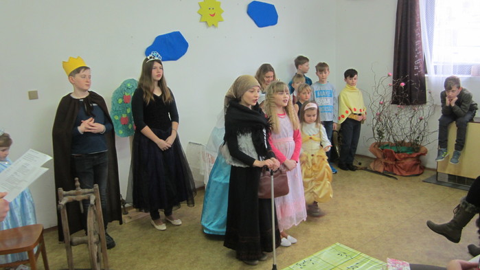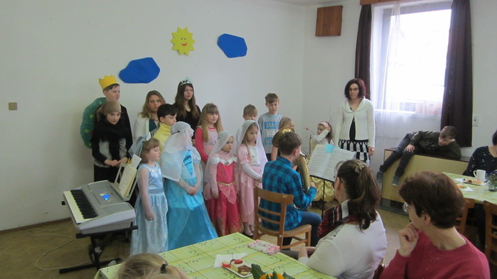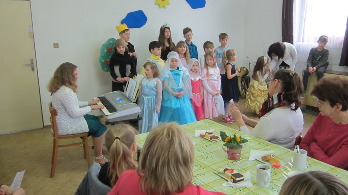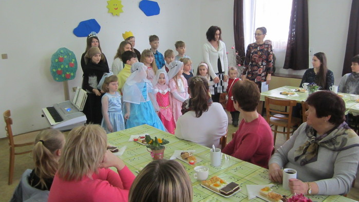 Letošní představení jsme zahájily písněmi Pod našimi okny, Pod naším okýnkem a Vyletěla holubička. Děti navštěvující Lidovou školu umění zahrály na své hudební nástroje a následovalo divadélko o Šípkové růžence. Rozloučily jsme se básničkami a přítomné obdarovaly jarní květinkou.