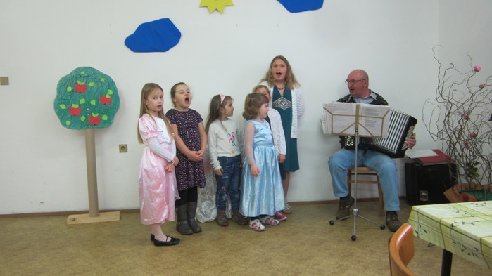 Po představení se ještě chvíli posedělo v družném rozhovoru. K poslechu nám zahrál pan Matoušek, ke kterému se děti nesměle připojily zpěvem. Myslím, že toto nečekal a byl mile překvapen.
