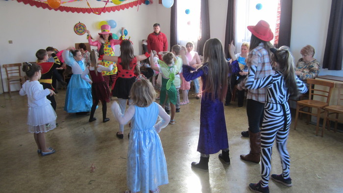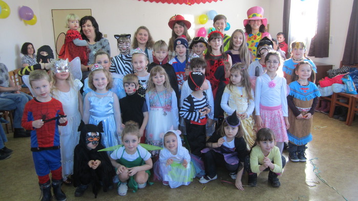 Sedmnáctý den měsíce února ve dvě hodiny odpoledne vypukla zábava pro děti převlečené do karnevalových masek. Na začátku byly pohybové písníčky pro rozhýbání těla, následovaly je veselé písničky pro veselou mysl a šťastně dětské dušičky. A pak už se jen skotačilo, tancovalo, smálo, hrály se hry a soutěžilo se sladkými odměnami. Před odchodem domů si děti vyzvedly balíček s překvapením.