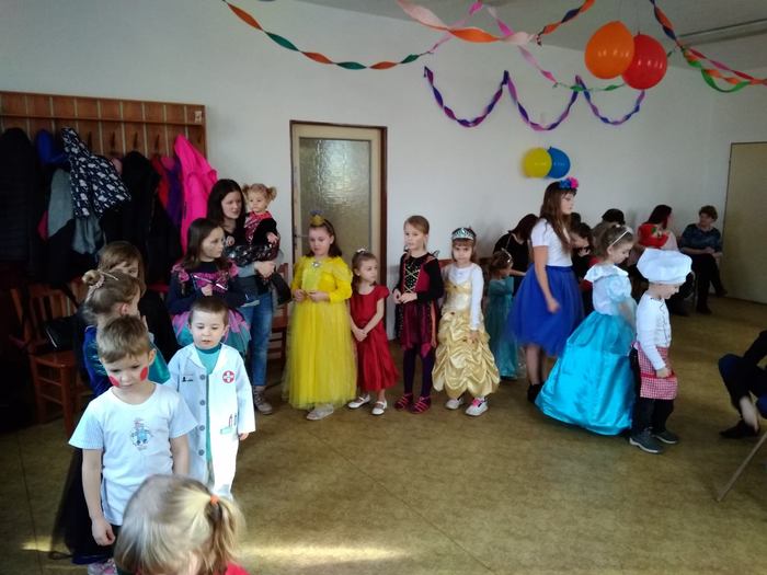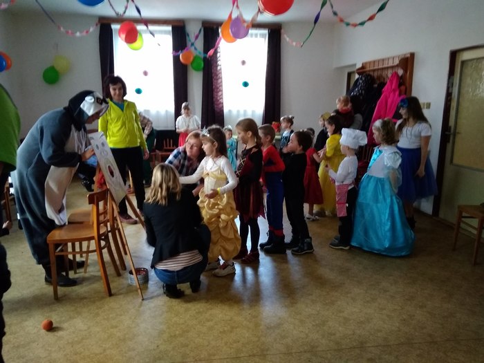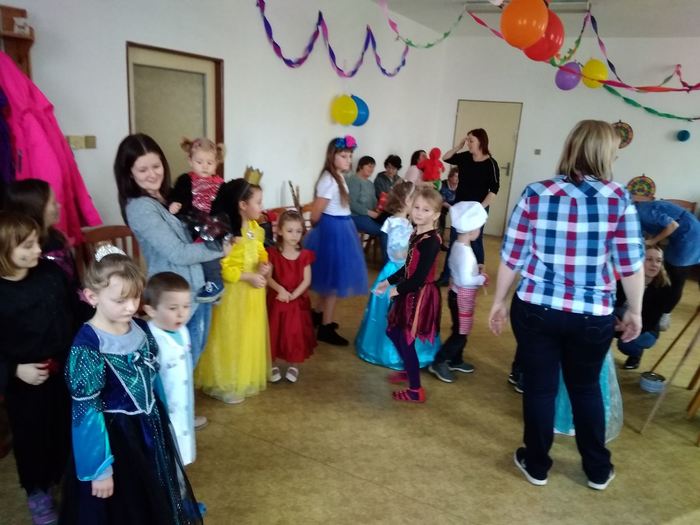 V letošní roce se karneval konal už 16. února. Ve dvě hodiny odpoledne vypuklo karnevalové rejdování princezniček a princezen, všelijakých zvířátek a rostlinek, čarodějnic, kuchařů a kuchaříčků i superhrdinů. Zlehka jsme rozhýbali těla pohybovými písničkami a pak už nic nebránilo tomu, abychom tancovali, běhali a točili se dokolečka. Také jsme si trochu zasoutěžili a nechyběl ani balíček s malým překvapením.