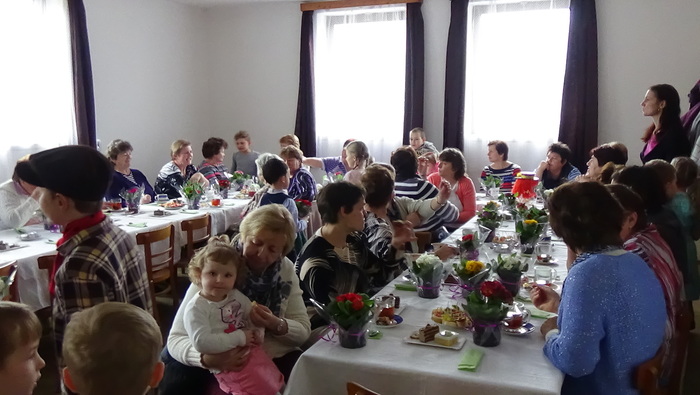 V letošním roce jsme opět pozvaly ženy a dívky ke společně strávenému svátečnímu odpoledni v místním pohostinství. Děti si pro ně připravily divadélko o perníkové chaloupce, ty nejmenší pohádku o řepě. Mnoho z nich začalo hrát na hudební nástroje, předvedly tedy čemu se již naučily. Některé recitovaly a společné zpívání rozhodně nemohlo chybět. K šálku kafe nebo čaje nesměl chybět zákusek. K poslechu nám zahrály pan Matoušek s panem Krejčím. Příjemná atmosféra byla prosycena mnoha přátelskými hovory. Na závěr byla každá obdarována jarní květinou pro radost. Děkujeme všem za pomoc a za účast, a těšíme se na další mile strávené odpoledne.