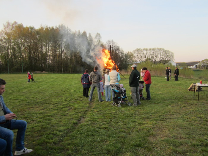 Tak jak již bylo předesláno, konalo se pálení čarodějnic v naší obci poprvé u obecní chaty. Hranice byla zhruba 5m vysoká a čarodějnici to na vršku hranice moc slušelo. Opodál byla postavena malá hranice, na které si mohl každý opéct buřtíka, který byl připravený společně s ostatním občerstvením.