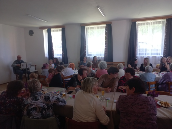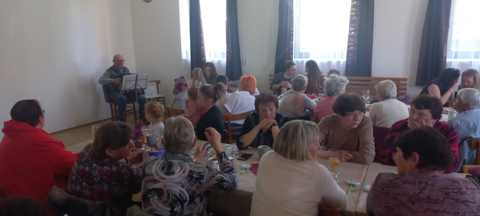 Po krásném dětském vystoupení si ženy poseděly při písních u harmoniky, které přišel zazpívat a zahrát oblíbený pan Matoušek, který je již pravidelným hostem a rád vždy přijde zpříjemnit chvíle pohody, a za to jsme moc rádi.