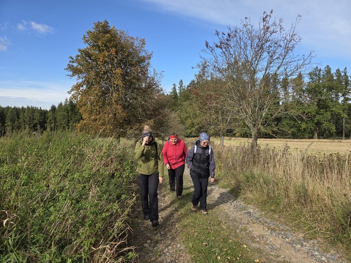 Naše cesta začala za budovou Komunitního centra v Sedletíně, odkud jsme pokračovaly za obcí cestou mezi poli k Sedletínskému dvoru, poté kolem studní směrem k lesu, kde jsme přešly potok Sázavku a dále již směrem k Mlýnskému rybníku. Cestou jsme pozorovaly podzimní přírodu a po cestě nás neopouštěla dobrá nálada a všeobecné povídání.