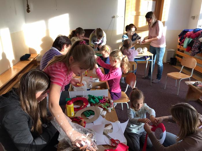 Podzimní dílničky se dětem líbily, a tak si vyprosily dílničky vánoční. Sešly jsme se, vymyslely výrobky: zimní skřítek, vánoční přáníčko, adventní věneček, andílci a připravily předlohy.