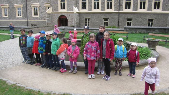Letošní výlet jsme pojali tak trochu lehce naučně a poučně. Zahájili jsme ho krátkou přednáškou o včelách a jejich životě ve Včelím domě v Hulicích. Pak si děti vyrobily svíčku ze včelího vosku a nakoupily dobroty ochucené medem. Po svačince jsme přejeli do zámku ve Zruči nad Sázavou.