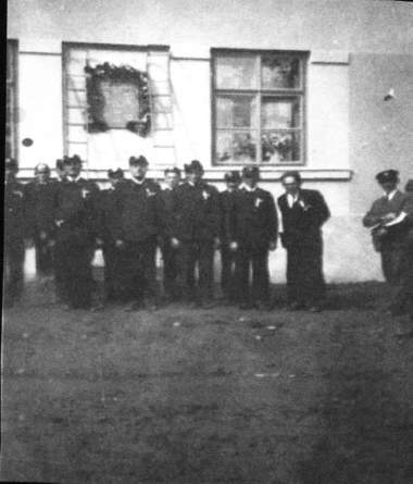Fotografie z roku 1931 ze slavnostního odhalení pamětní desky.